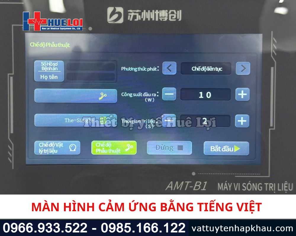 Không chỉ nổi bật về hiệu quả điều trị, máy vi sóng trị liệu AMT còn gây ấn tượng với thiết kế hiện đại, giao diện thân thiện hoàn toàn bằng Tiếng Việt, giúp thao tác dễ dàng cho cả các kỹ thuật viên mới.