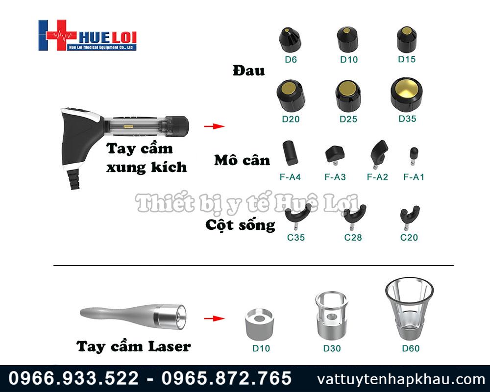 - Đầu D10: nhỏ, tập trung tia laser hơn, công suất cao và tác động sâu, phù hợp cho ngón tay, cổ tay.